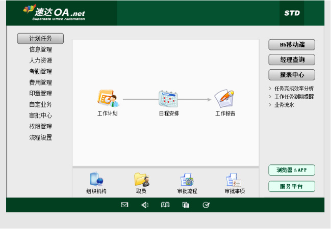 《速達OA.Net》是速達公司以二十年開發(fā)經(jīng)驗積淀、融合數(shù)萬家客戶的需求理解與管理經(jīng)驗,精心打造的一款OA協(xié)同創(chuàng)新系統(tǒng),產(chǎn)品創(chuàng)造性的將C\S&B\S&APP結(jié)構(gòu)融為一體,秉承速達軟件一貫的易用性和實用性,以審批流程為核心,審批人條件指派方式實現(xiàn)了審批流程兼容的最大化,實時到位的提醒致力提高企業(yè)工作效率,系統(tǒng)預(yù)設(shè)通用功能模塊,并支持自定義業(yè)務(wù)和自定義報表,滿足企業(yè)個性化功能拓展的需要,并可通過部門進行數(shù)據(jù)權(quán)限分配,全面提升企業(yè)管理效率和管理水平。